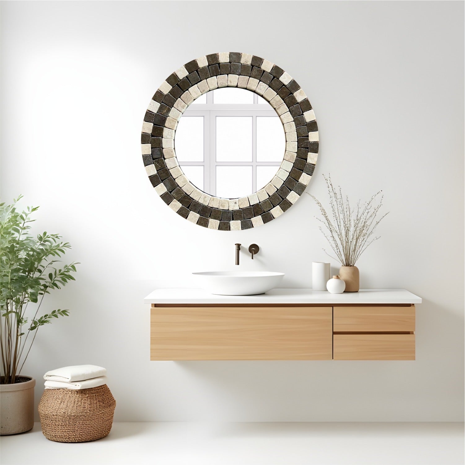 Designed for luxurious bungalows that prioritize individuality, this mosaic mirror reimagines quirky home decor with a tailored touch. It’s made for those who dare to combine modern and vintage, symmetry and surprise, structure and spirit. This mirror stands proudly in creative spaces—curved hallways, breakfast lounges, or imaginative entry zones—without losing its sense of harmony.