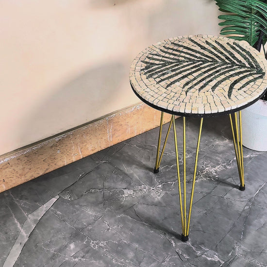 Smart Mosaic Coffee / Vase Table - Elegant Cream Tree Artwork