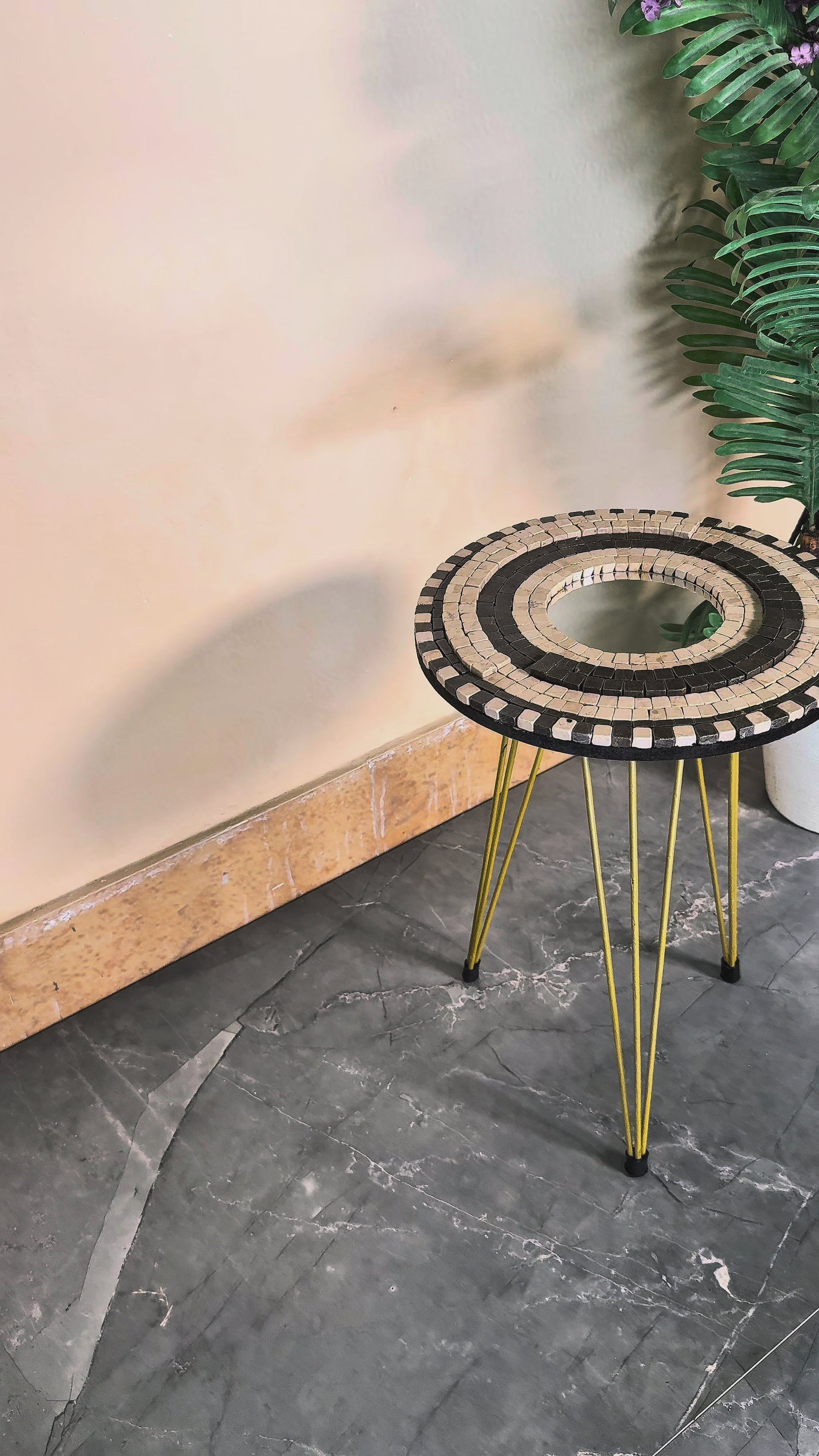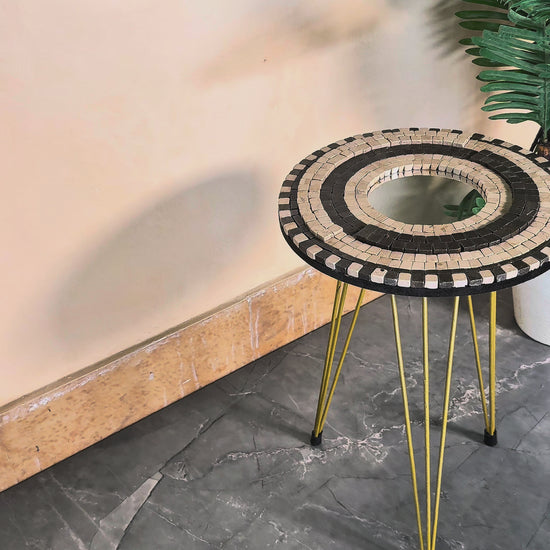 Smart Mosaic Coffee / Vase Table - Elegant Coffee Brown Stone Design with Acrylic Mirror